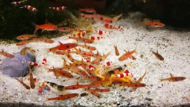 Derzeit pflegen wir gerade 5-7 Arten von Cheraxkrebsen und 3-4 anderen Krebsarten aus vers. Gattungen + 7-12 vers. Garnelenarten und Farben.
